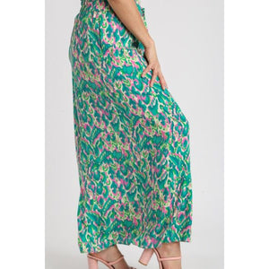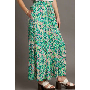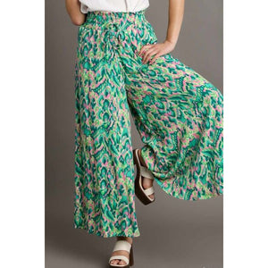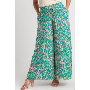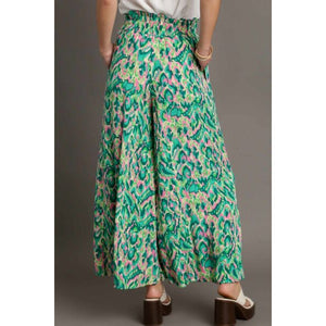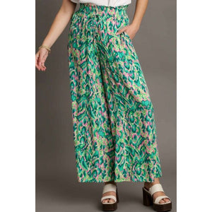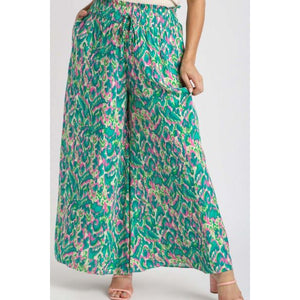Umgee Full Size Mixed Print High Waist Wide Leg Pants Plus Size