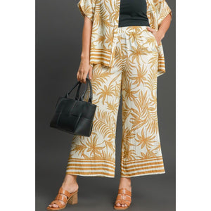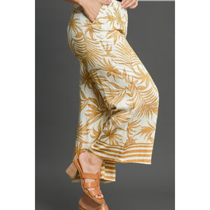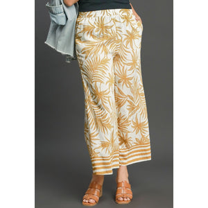 Umgee Full Size Tropical Print Wide Leg Pants Plus Size