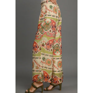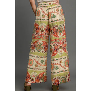 Umgee Full Size Wide Leg Border Print Pants Plus Size