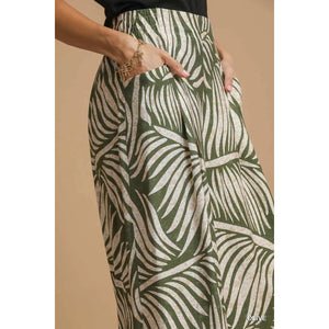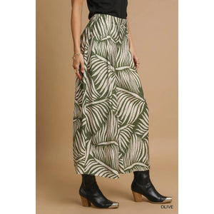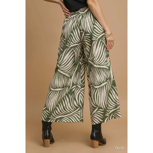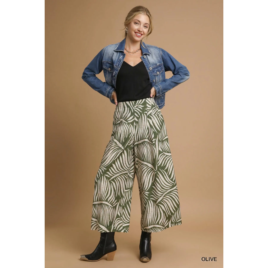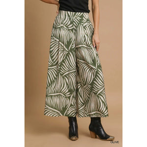 Umgee Palm Leaf Print Wide Leg Culotte Pants
