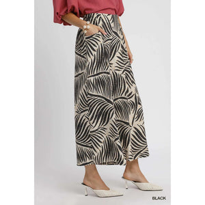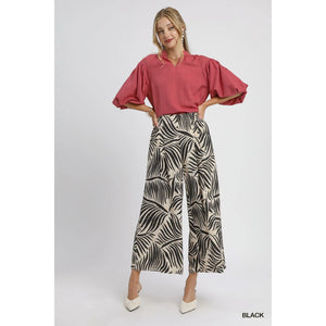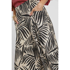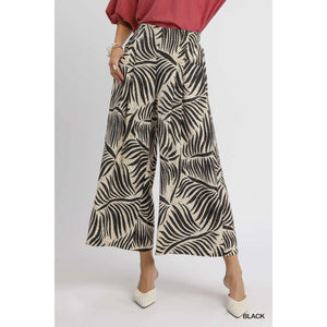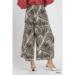 Umgee Palm Leaf Print Wide Leg Culotte Pants