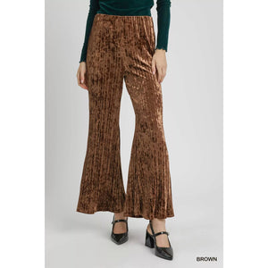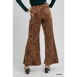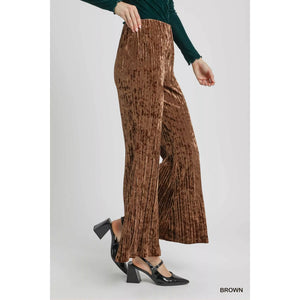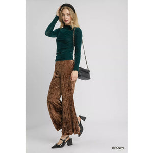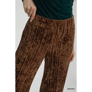 Umgee Velvet Pleated Wide Leg Pants