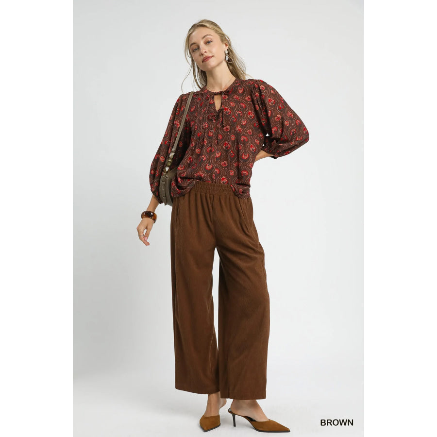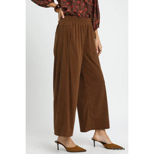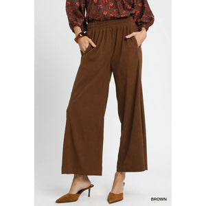 These stylish brown wide-leg palazzo pants feature a comfortable elastic waistband and relaxed silhouette perfect for both casual and semi-formal occasions. Made from premium wrinkle-resistant fabric with a flowing drape, these ankle-length pants offer ultimate comfort with their pull-on design and functional side pockets. The rich brown earth tone color pairs beautifully with various tops, while the wide-leg cut creates an elongating and flattering silhouette. Ideal for work, weekend outings, or travel wear.