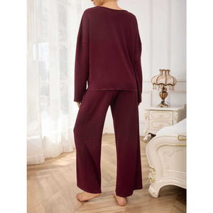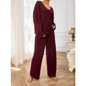 V-Neck Long Sleeve Top and Wide Leg Pants Set