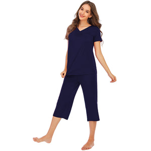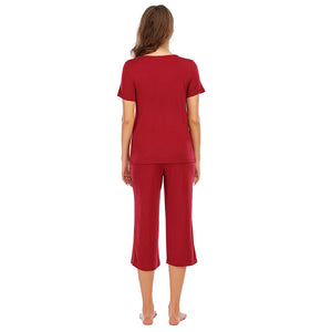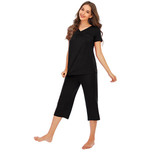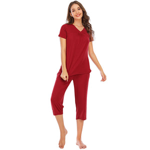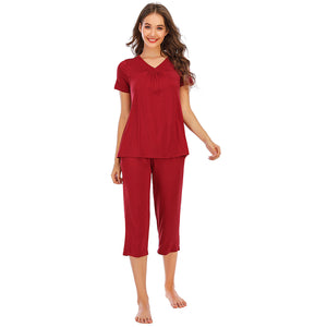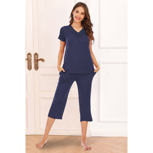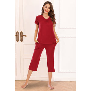 V-Neck Short Sleeve Top and Pants Lounge Set