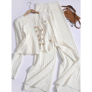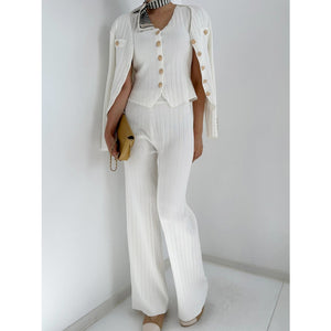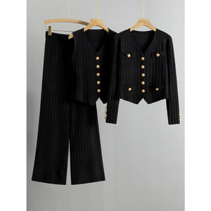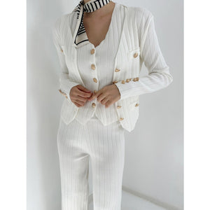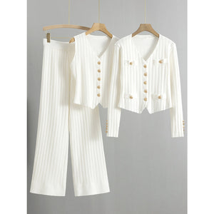 V-Neck Tank, Cardigan and Pants Three-Piece Sweater Set