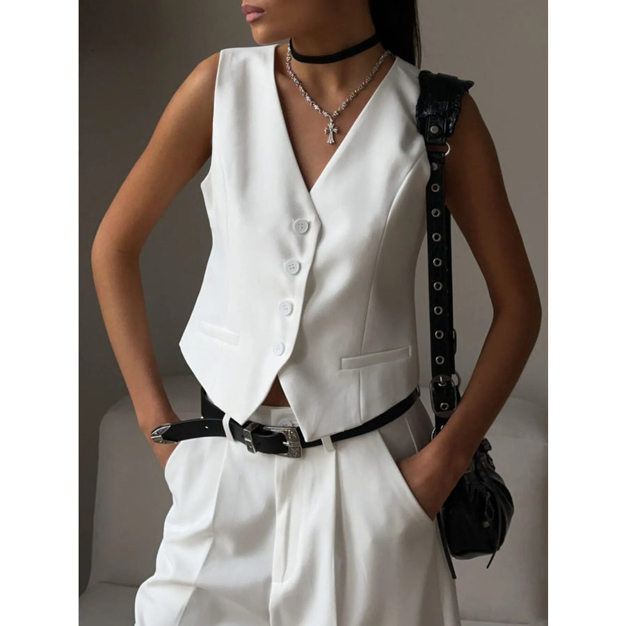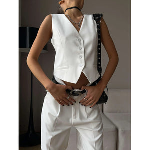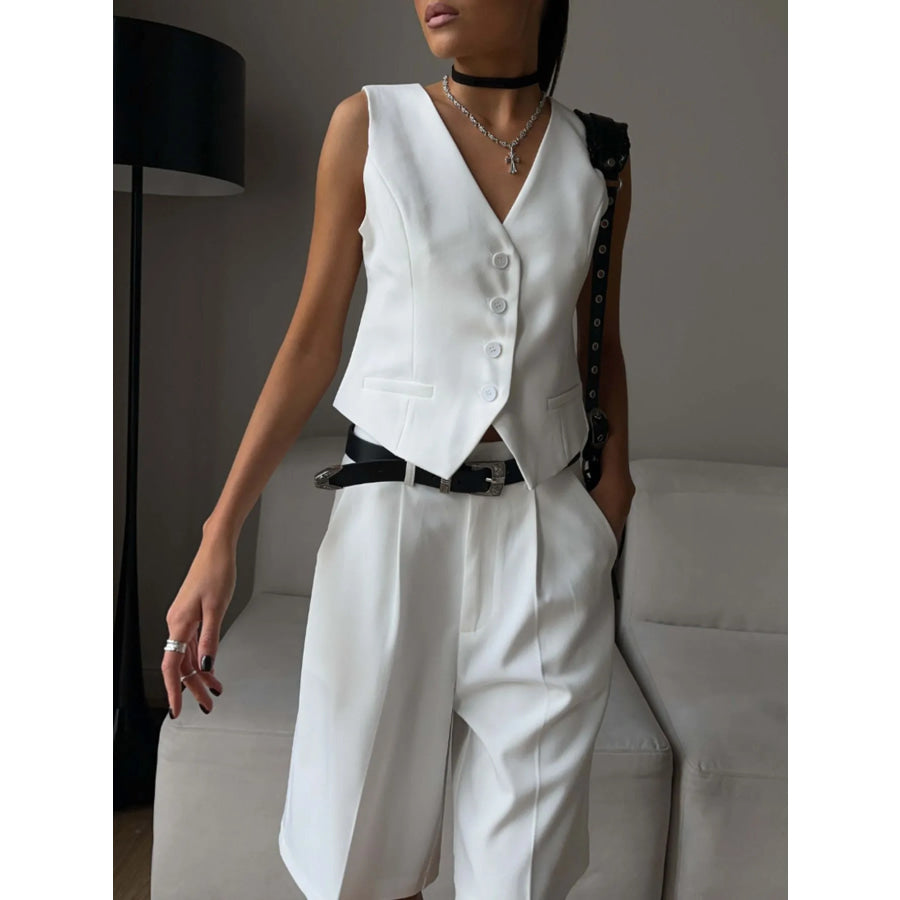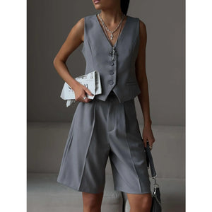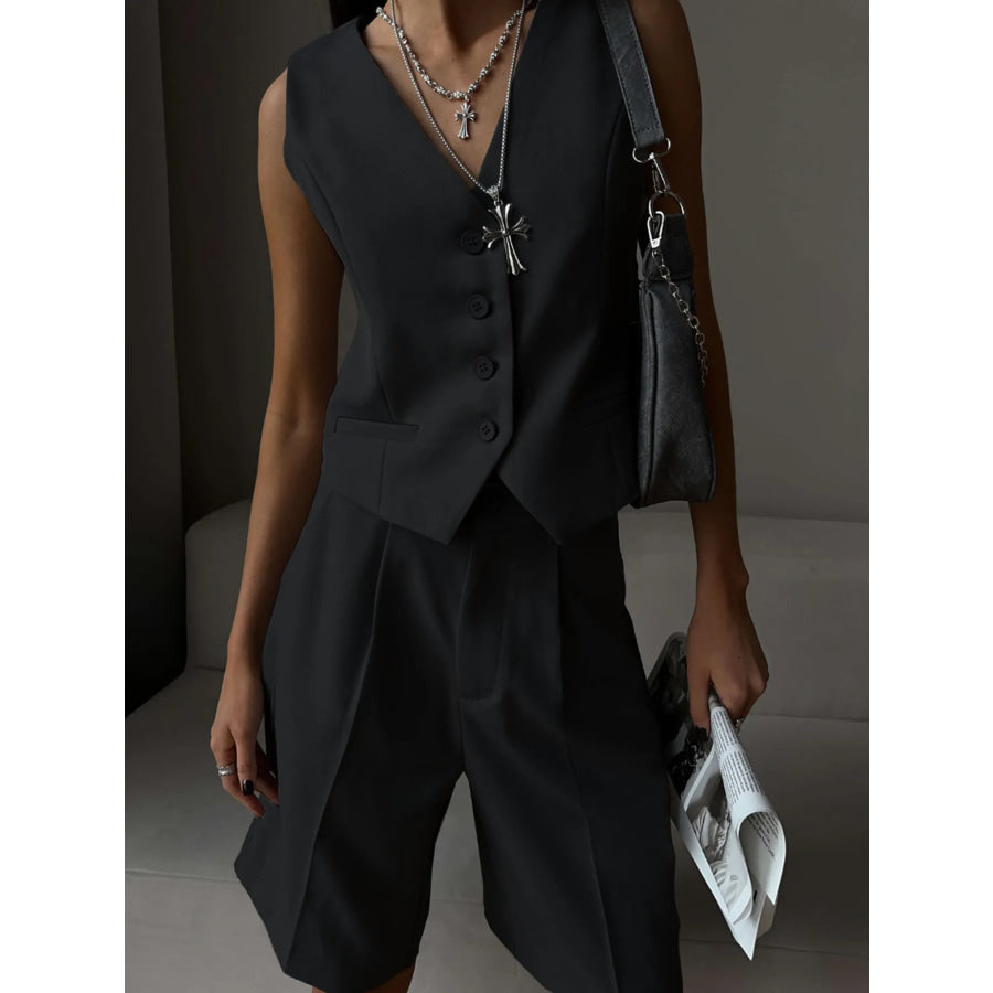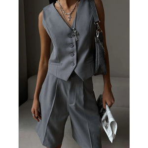V-Neck Vest and Pants Two-Piece Blazer Set