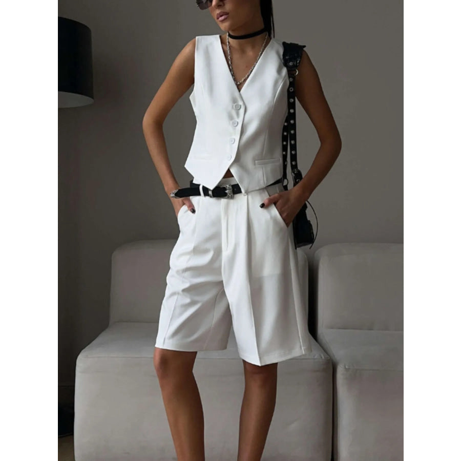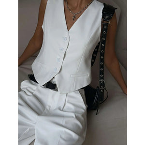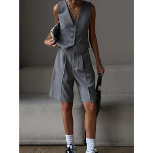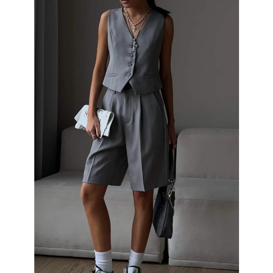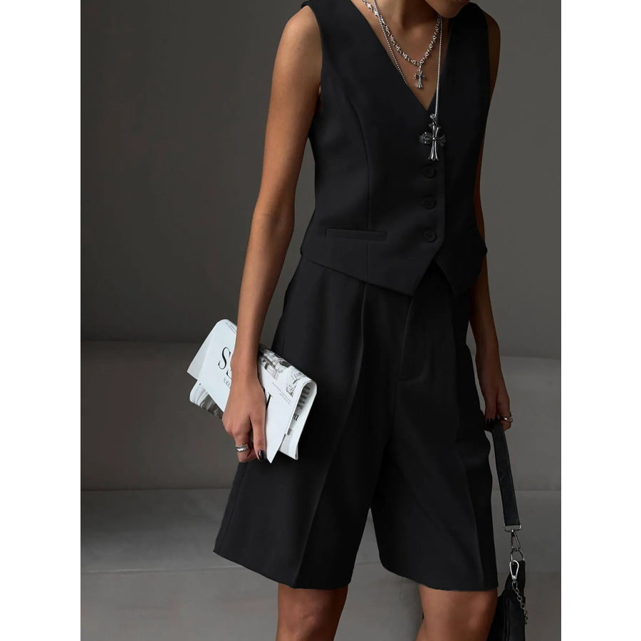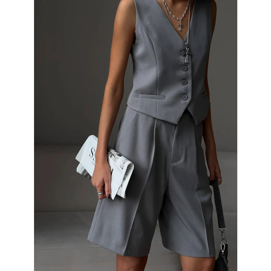 V-Neck Vest and Pants Two-Piece Blazer Set