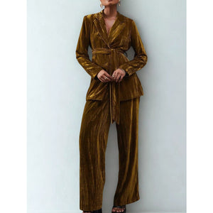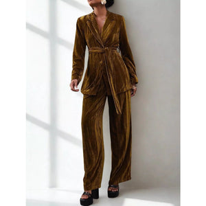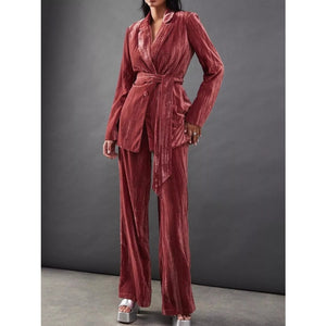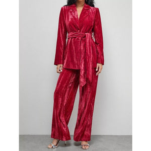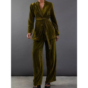 Velvet Lapel Collar Blazer & Pants Set