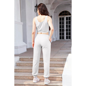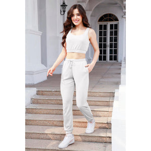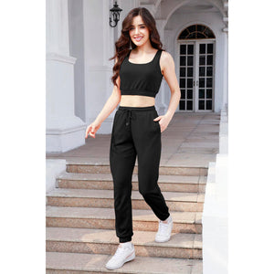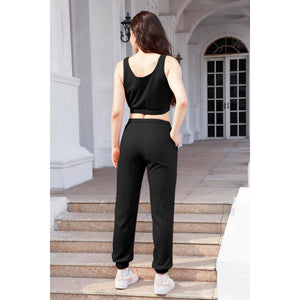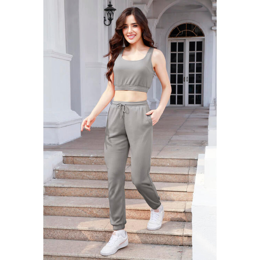 Waffle-Knit Cropped Tank and Drawstring Pants Set