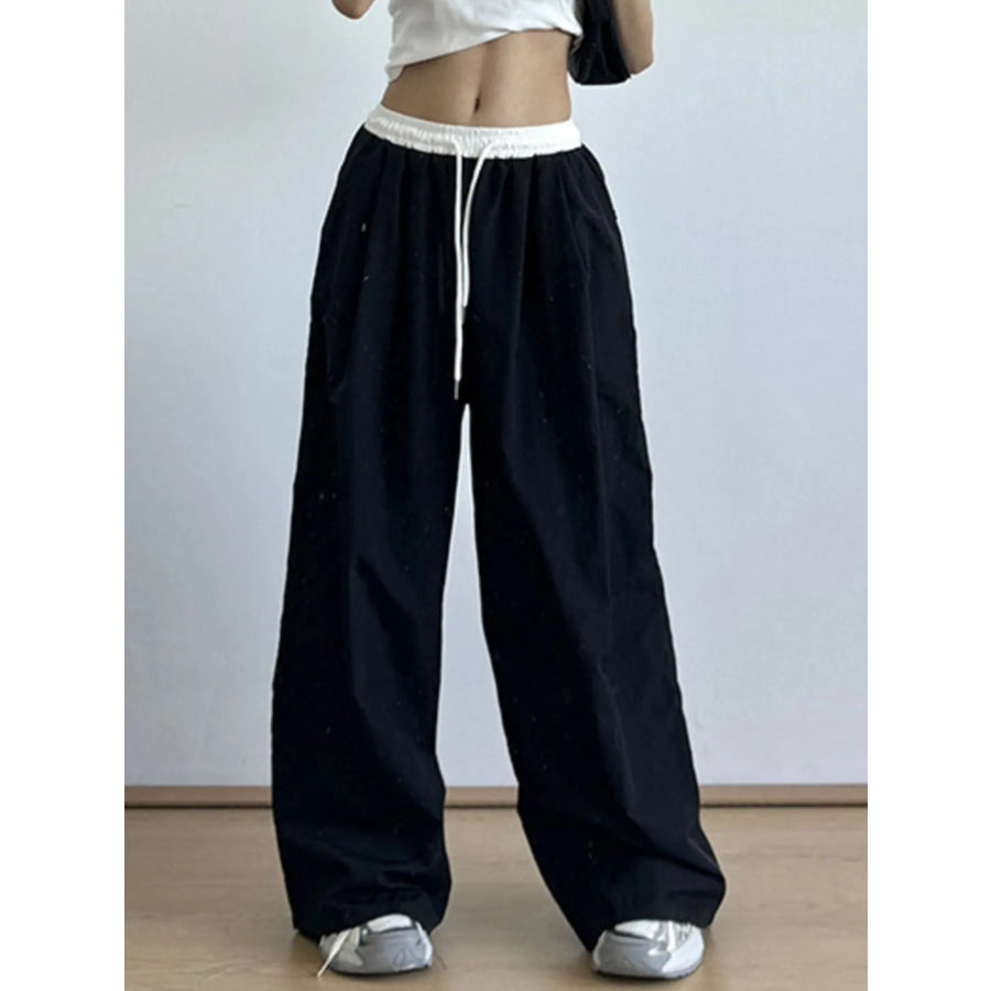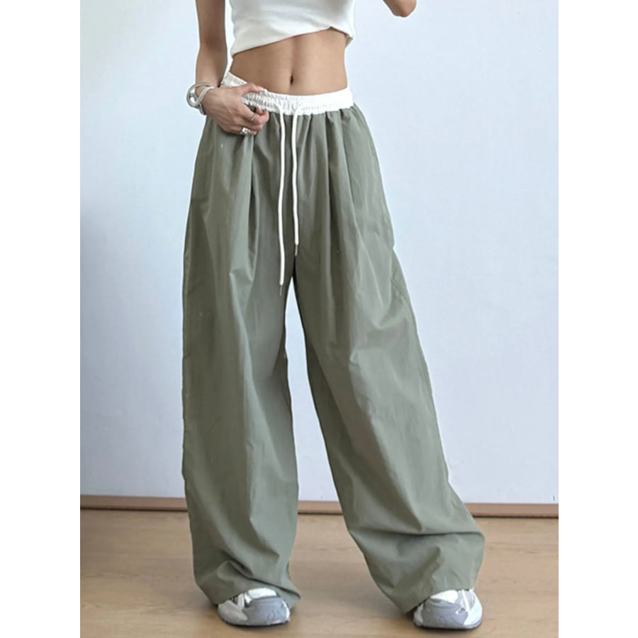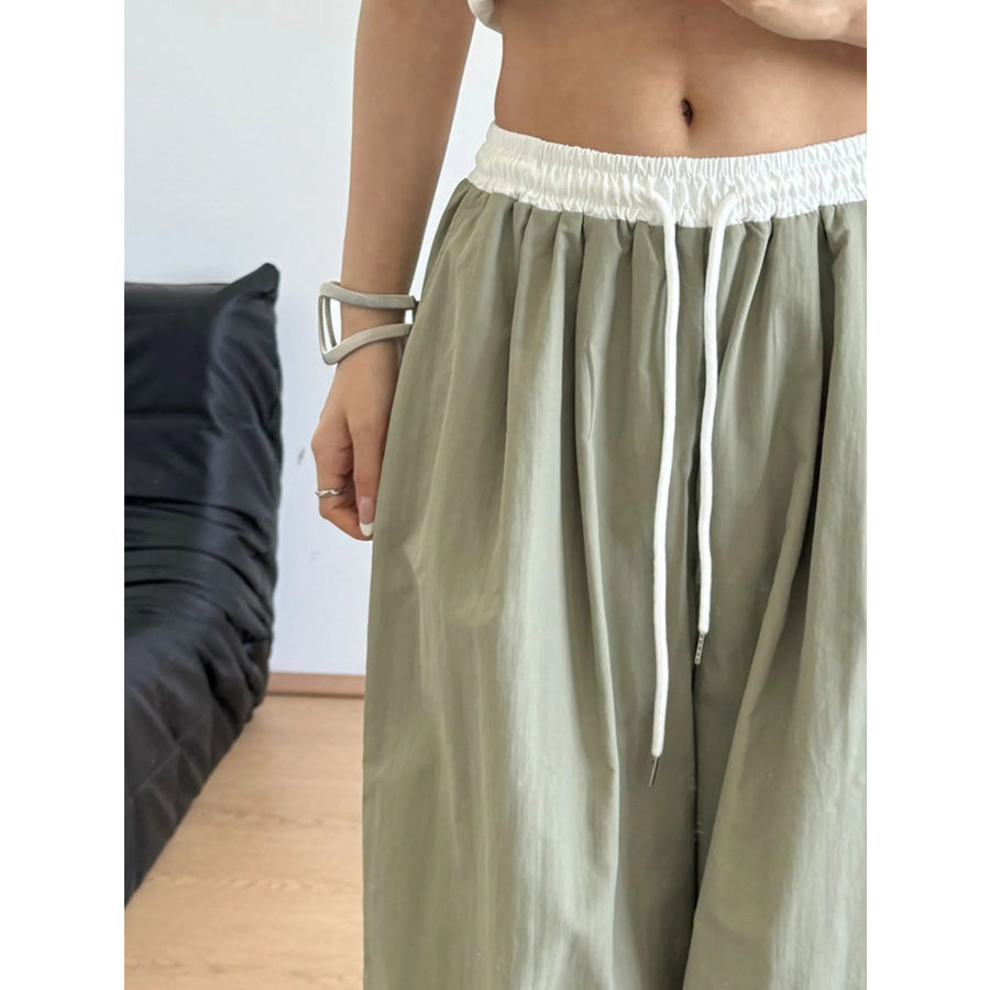 Wide Leg Drawstring Casual Pants