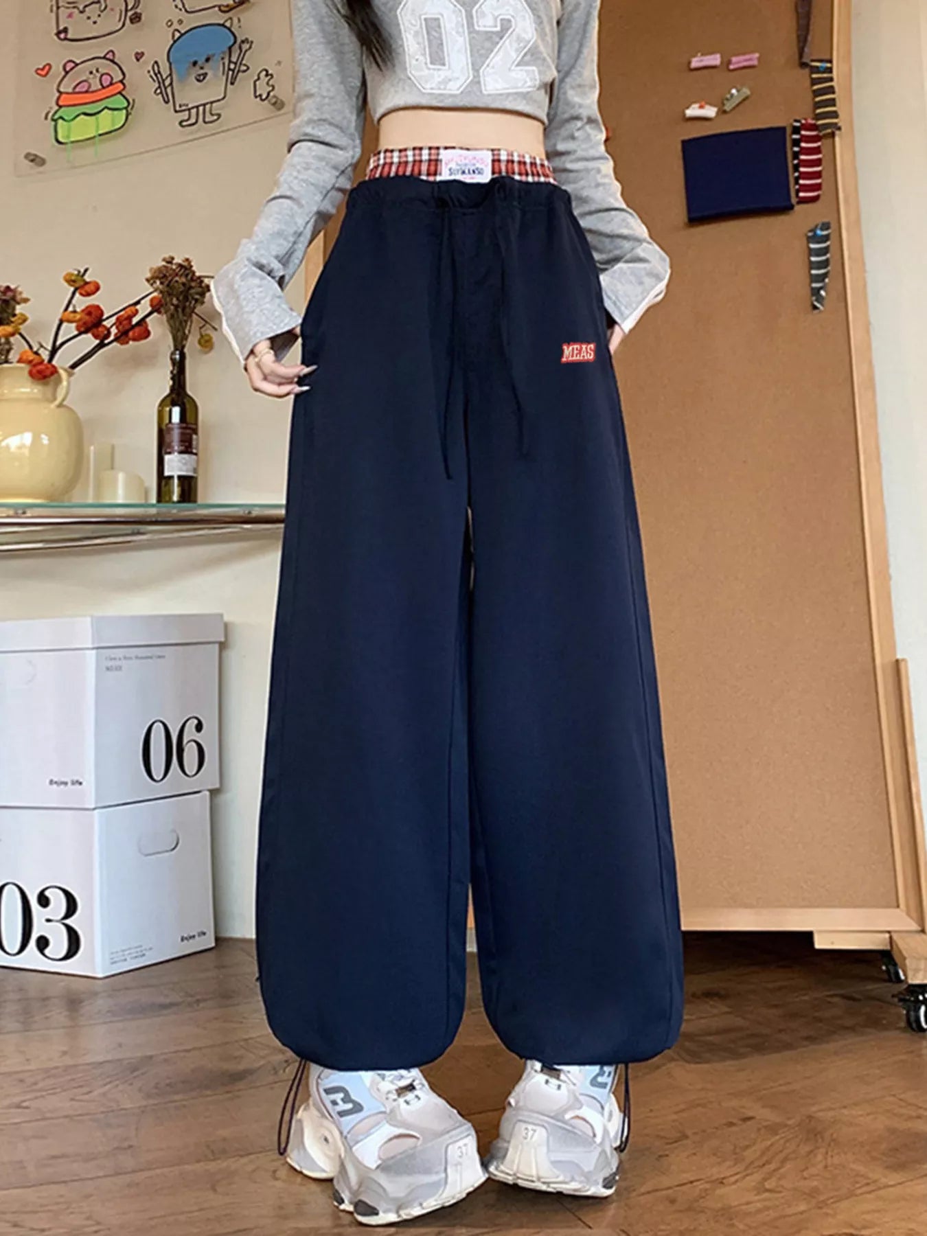 Wide Leg Drawstring Casual Pants