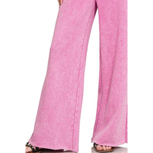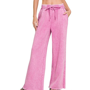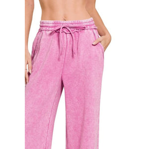 Zenana Acid Wash Fleece Palazzo Sweatpants with Pockets