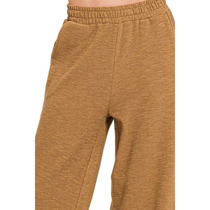 These cotton slub wide leg pants are a comfortable and stylish addition to your wardrobe. Made from breathable cotton slub fabric, they offer a relaxed and casual feel. The wide leg design provides a flattering and on-trend silhouette. Perfect for both lounging at home or running errands, these pants offer versatility and comfort. Elevate your everyday look with these chic and easy-to-style wide leg pants.