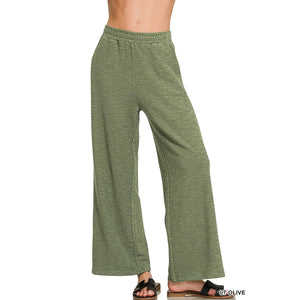 Zenana Cotton Slub Wide Leg Pants