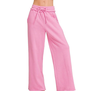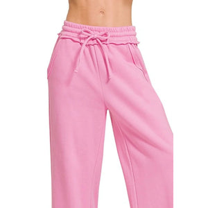 Zenana Fleece Exposed Seam Wide Leg Sweatpants