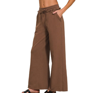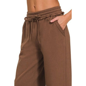 Zenana Fleece Exposed Seam Wide Leg Sweatpants