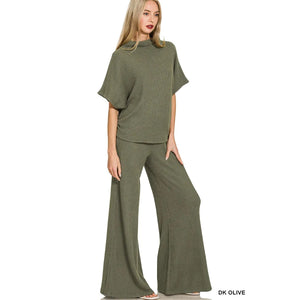Zenana Mock Neck Top and Pants Sweater Set