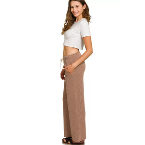 The raised rib short sleeve tee and pants set is a coordinated outfit that combines comfort and style effortlessly. The raised rib design adds texture and interest to the classic tee silhouette. Paired with matching pants, this set offers a cohesive and put-together look. Perfect for a casual day out or lounging at home, this set is both versatile and fashionable. Elevate your everyday wardrobe with this chic and comfortable matching set.