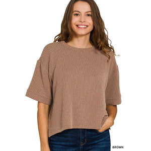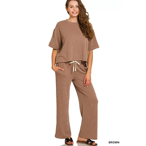Zenana Raised Rib Short Sleeve Tee & Pants Set