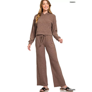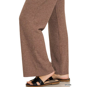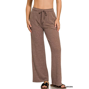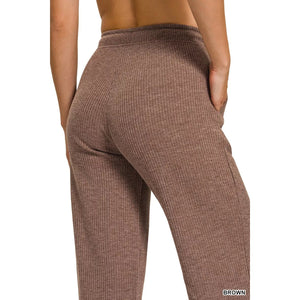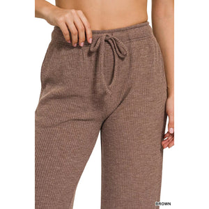 These premium lounge bottoms feature a luxuriously soft knit construction with a relaxed wide-leg silhouette perfect for ultimate comfort. The adjustable drawstring waistband ensures a customized fit while the breathable fabric blend provides all-day comfort. Designed with a sophisticated ribbed texture in a warm brown tone, these versatile bottoms are ideal for lounging at home, casual outings, or sleepwear. The full-length design offers complete coverage while maintaining a flattering drape that moves with you.