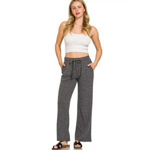 The Ribbed Drawstring Lounge Pants are a cozy and stylish addition to your loungewear collection. Made from ribbed fabric, these pants provide a comfortable and stretchy fit. The drawstring waist allows for a customizable and secure fit. Ideal for relaxing at home or running errands, these lounge pants combine comfort and fashion effortlessly. With a versatile design, they can be paired with a casual top for a laid-back yet put-together look.