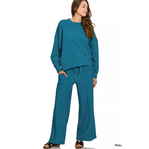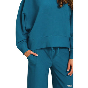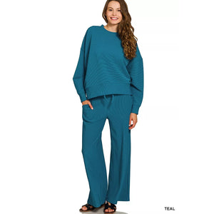 Zenana Ribbed Round Neck Pullover and Drawstring Pants Set