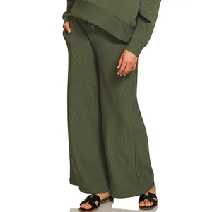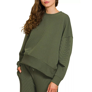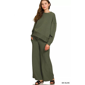 Zenana Ribbed Round Neck Pullover and Drawstring Pants Set