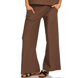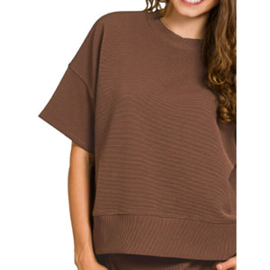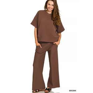 This comfortable and stylish set includes a ribbed round neck tee and matching pants. Perfect for lounging at home or running errands in style. The ribbed texture adds a trendy touch to this classic silhouette. Made from soft and breathable fabric for all-day comfort. Elevate your casual wardrobe with this must-have set.