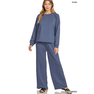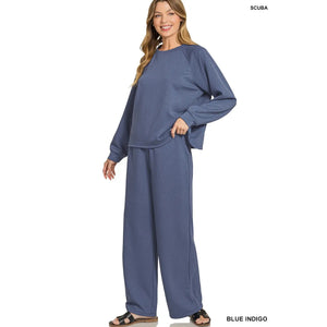 Zenana Scuba Crewneck Sweatshirt and Pants Set