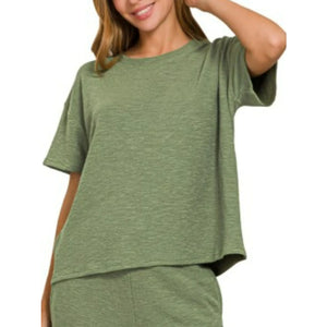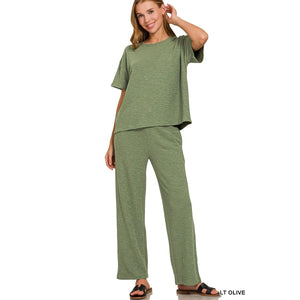 Zenana Slub Short Sleeve T-Shirt and Pants Set