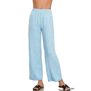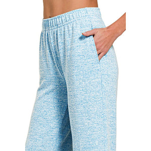 Zenana Soft Melange Hacci Elastic Waistband Lounge Pants