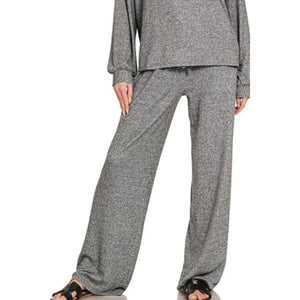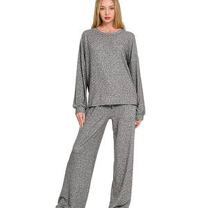 Zenana Soft Melange Hacci Long Slv Tee & Pants Set