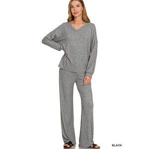 Zenana Soft Melange Long Sleeve Tee & Pants Set