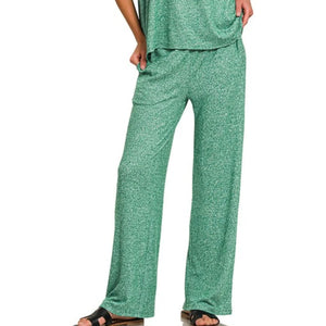 Zenana Soft Melange Short Sleeve Tee & Long Pants Set