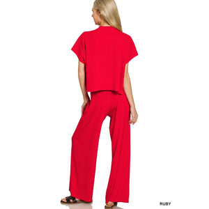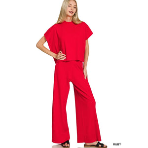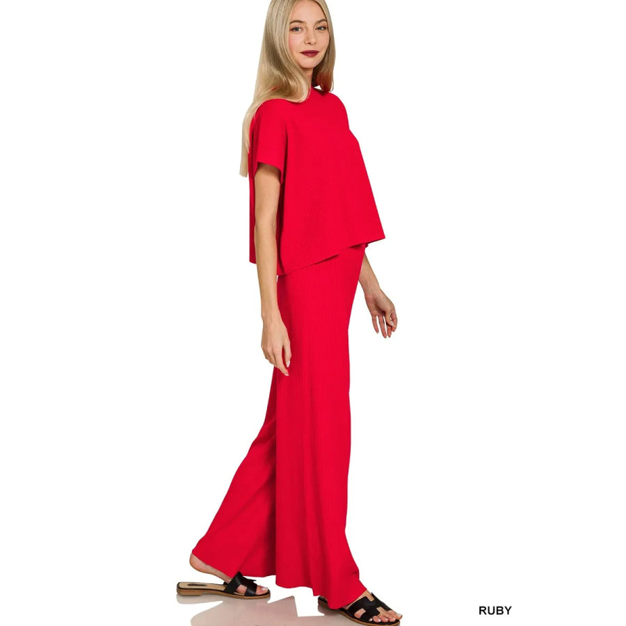 Zenana Viscose Sweater Short Sleeve Top and Pants Set