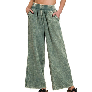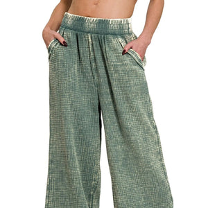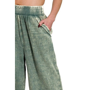 Zenana Washed Double Gauze Elastic Band Waist Pants