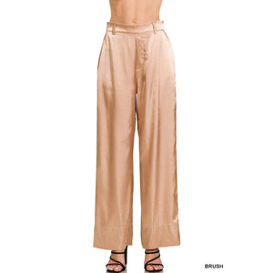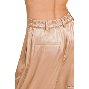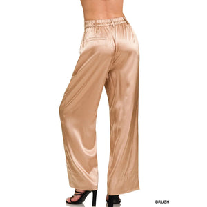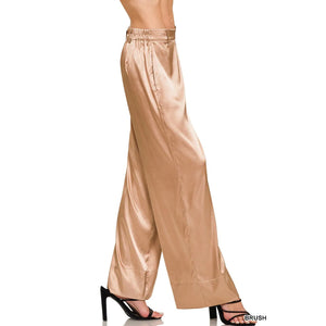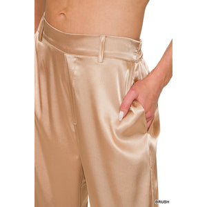 These wide-leg satin pants exude elegance and sophistication with their luxurious fabric and modern silhouette. Perfect for dressing up for special occasions or adding a touch of glamour to your everyday style, the wide-leg design offers a flowy and flattering fit. The satin fabric adds a sleek and luminous sheen, creating a polished and chic look. Elevate your wardrobe with these wide-leg satin pants for a refined and fashion-forward ensemble.