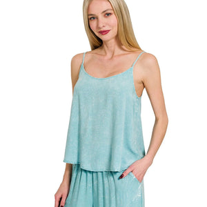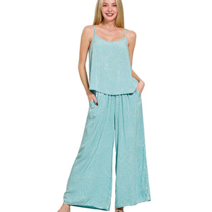 Zenana Woven Acid Crinkle Washed Cami & Pants 2 Piece Set