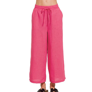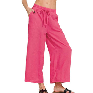 Zenana Woven Crepe Elastic Band Waist Cropped Pants