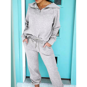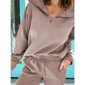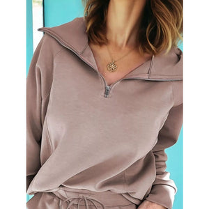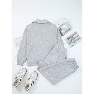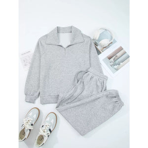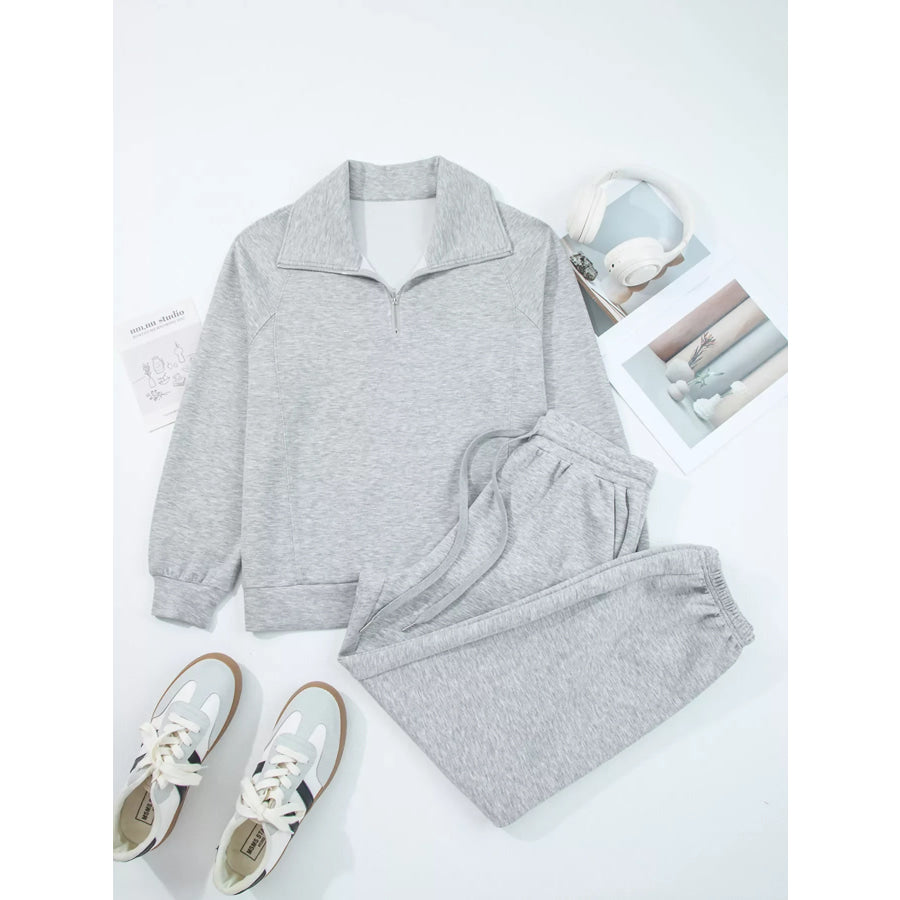 Zip Collar Long Sleeve Top and Drawstring Pants Set