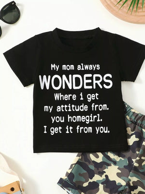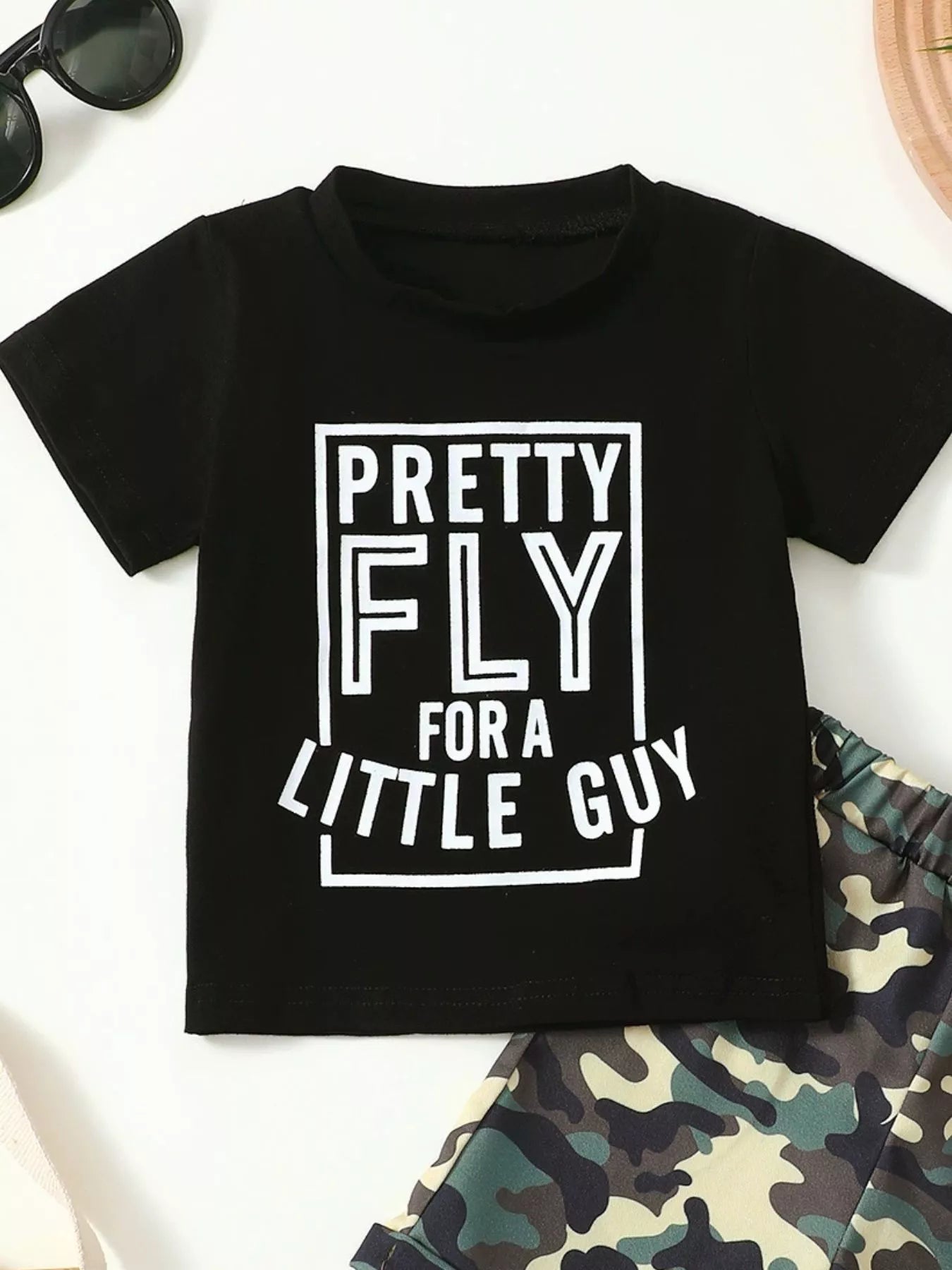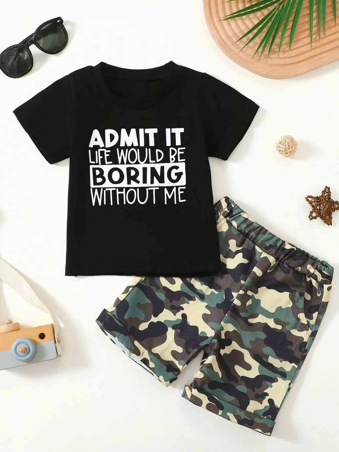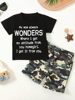 Children's Letter Graphic Tee and Camouflage Shorts Set