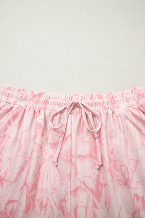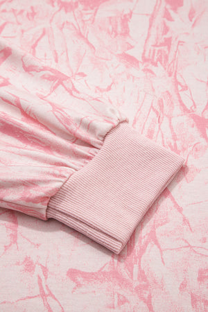 Pink Mock Neck Pullover and Shorts Camo Set