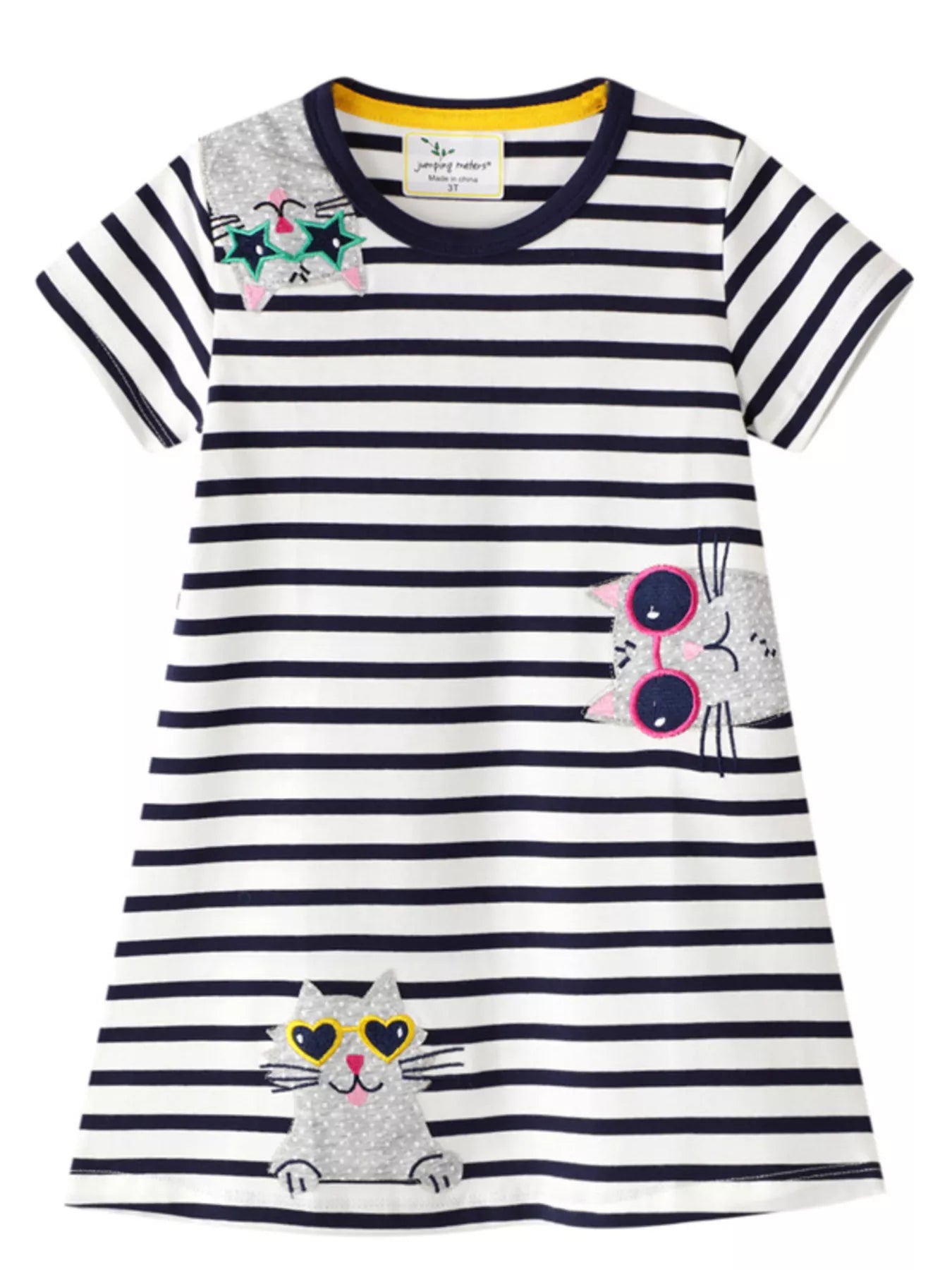 Children's Striped Cat Short Sleeve Dress