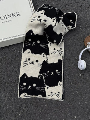 Cute Cat Pattern Knitted Scarf