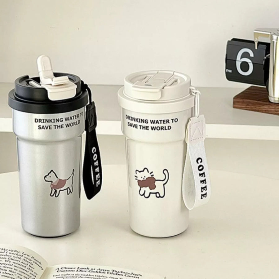 Cute Cat Stainless Steel Tumbler with Straw