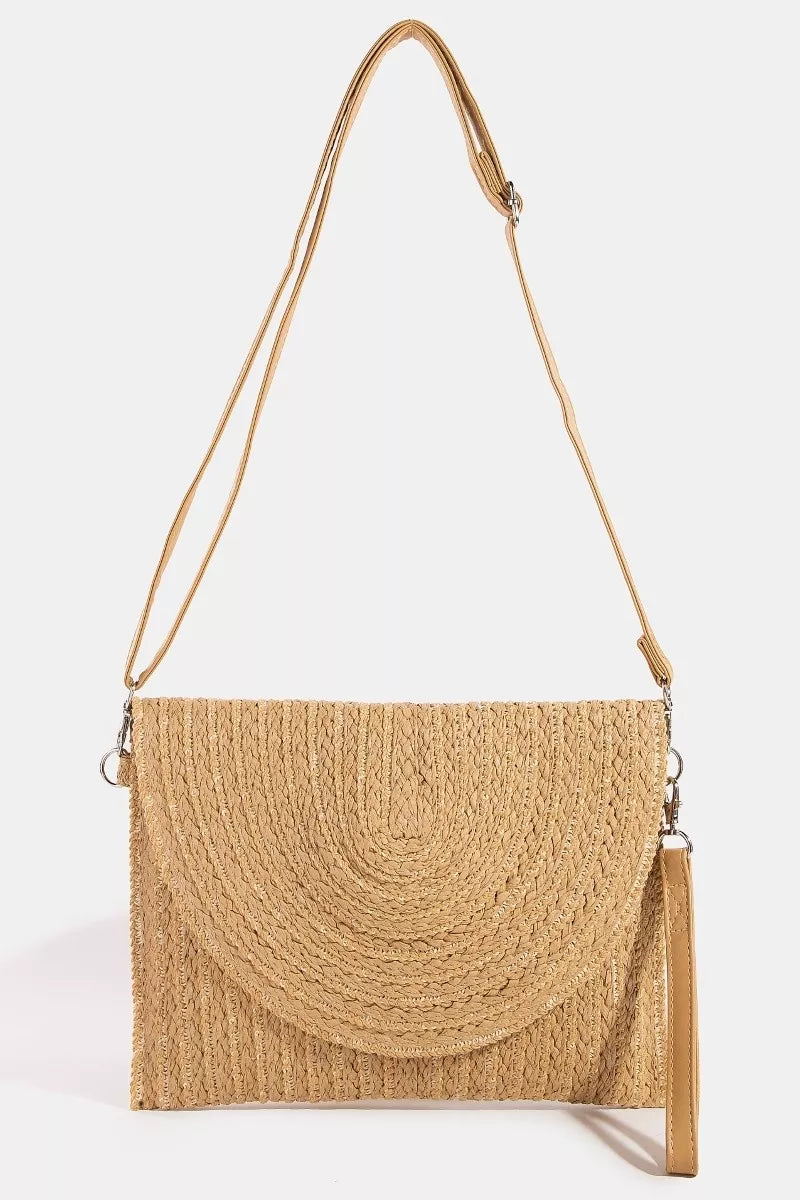 Fame Round Flap Intricate Paper Woven Envelope Clutch Bag