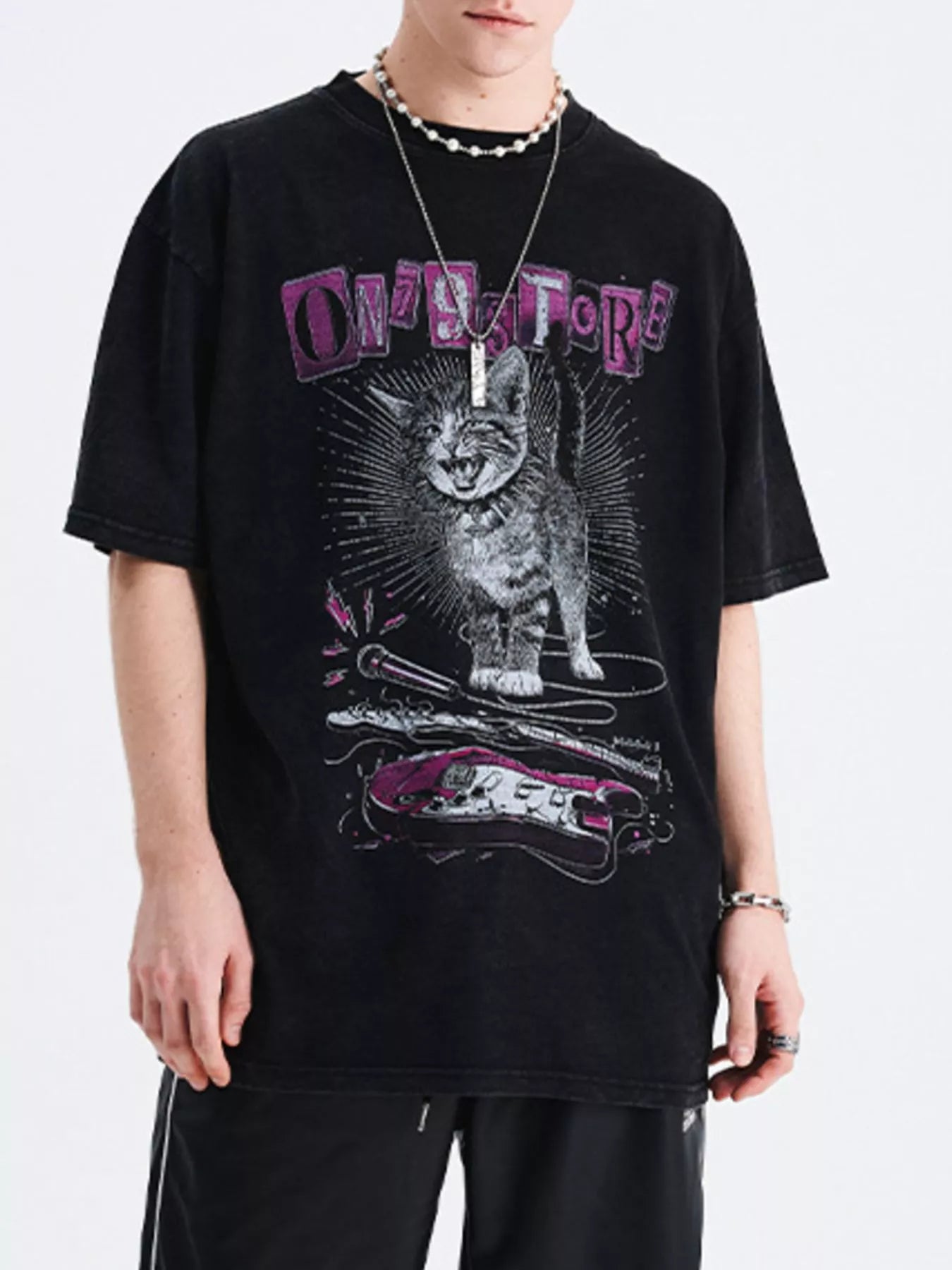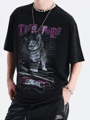 Men's Cat Graphic Oversized T-Shirt