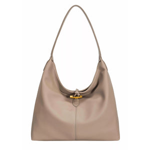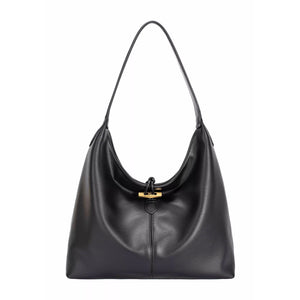 This premium leather shoulder bag features a classic hobo-style design with genuine leather construction and luxurious soft texture. The spacious slouchy silhouette offers ample storage space while maintaining an elegant minimalist aesthetic. Crafted with high-quality leather and finished with sophisticated gold-tone hardware, this versatile bag is perfect for daily use, work, or casual outings. The comfortable single shoulder strap provides easy carrying, while the timeless black color ensures effortless coordination with any wardrobe. The premium leather material offers durability and develops a beautiful patina over time.
