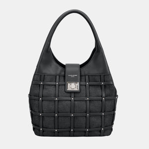 The Rivet Decor Handbag is a stylish and eye-catching accessory that adds a touch of edgy flair to your look. Featuring chic rivet decorations, this handbag exudes a modern and trendy vibe. The structured design offers a sleek silhouette while providing ample space for your essentials. Carry it by the top handle or sling it over your shoulder for versatile and chic styling options. Make a bold statement with the Rivet Decor Handbag and showcase your unique sense of fashion. Elevate your outfit with this on-trend handbag that combines fashion-forward design with practical functionality.